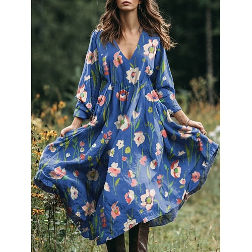 Per donna Abito Midi Vestito Estivo Abito a trapezio Vacanza Casual Boho Ferie Data Spiaggia Vestibilità comoda Floreale Grafico Paisley Manica Lunga Scollo a V Rosa chiaro Verde chiaro Viola chiaro
