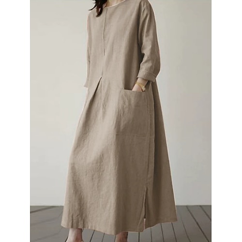 Per donna Nero Blu Verde Estate Primavera Abito Midi Abiti ispirati al lino Vestito Casual Abito in cotone e lino Essenziale Moderno Quotidiano Weekend Vestibilità comoda Semplice Girocollo