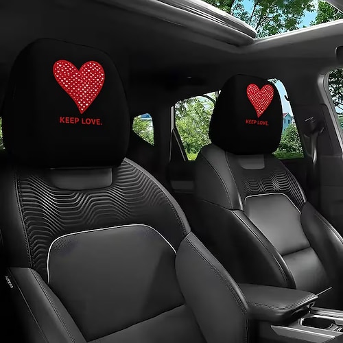 2 Stück niedliche Kopfstützenbezüge mit Blumen- und Herzchenmuster, Kopfstützenschutz mit herzaugendem Mädchenmotiv fürs Auto, Innendekoration, ohne Füllung, einfach zu montieren und zu waschen,