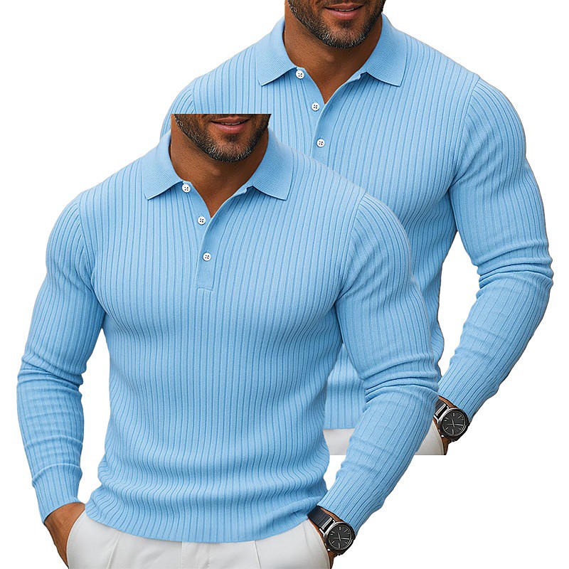 Men's Rib Knit Top Textured Street Casual Lapel Long Sleeve Basic Modern Plain 2 Piece Buttons Spring Fall All Seasons Slim Fit Gray / Navy Gray / White Blue White Blue Gray Blue Navy Navy