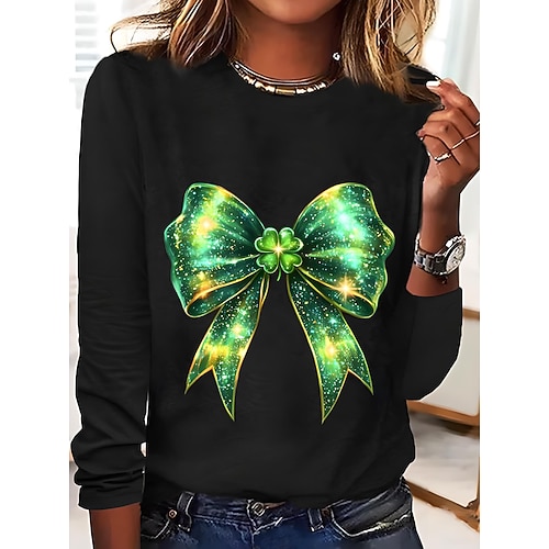 San Patrizio Per donna Maglietta Trifoglio Piante Casual Manica Lunga Girocollo Top Regolari Quotidiano Stampato Nero Bianco Blu Cachi Grigio Primavera Autunno