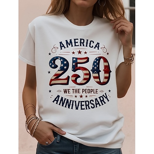 Giorno dell'Indipendenza Americana Per donna Maglietta Grafico Bandiera Americana Vintage Elegante Classico Manica Corta Girocollo Top Regolari Quotidiano Weekend Stampato Blu Nero Bianco Rosso