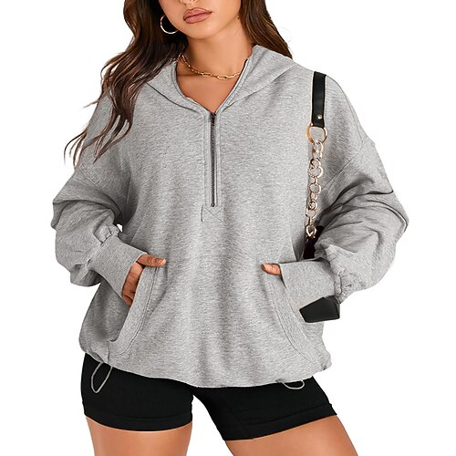 Per donna Felpa con cappuccio Semplice Casual Manica Lunga Con Cappuccio Top Regolari Abbigliamento Quotidiano Ferie Uscire Tasca Mezza cerniera Rosso arancione Nero Verde chiaro Viola Grigio chiaro