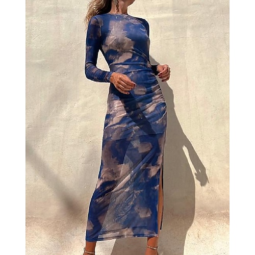 Per donna Abito Midi Vestito da Festa Abito da Cocktail Tubino Abito Stampato Moderno Festa serale Feste Occasione speciale Vestibilità regolare Floreale Manica Lunga Girocollo Blu Nero Rosa