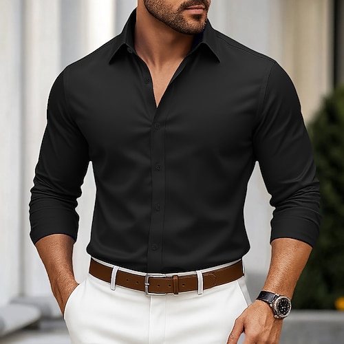 Per uomo Camicia Camicia in raso Camicia elegante Camicia casual Camicia con Bottoni Camicia da Ballo Nero Bianco Blu reale Azzurro Manica Lunga Semplice Bavero Casuale Feste Puro Abbigliamento