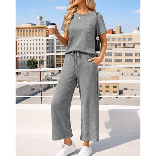 Per donna Set di tute e pullover Tuta da 2 pezzi Abiti da salotto Coulisse con tasca Tinta unita Set di Abbigliamento Sportivo Estate Primavera Nero Blu marino Allenamento in Palestra Jogging Corsa