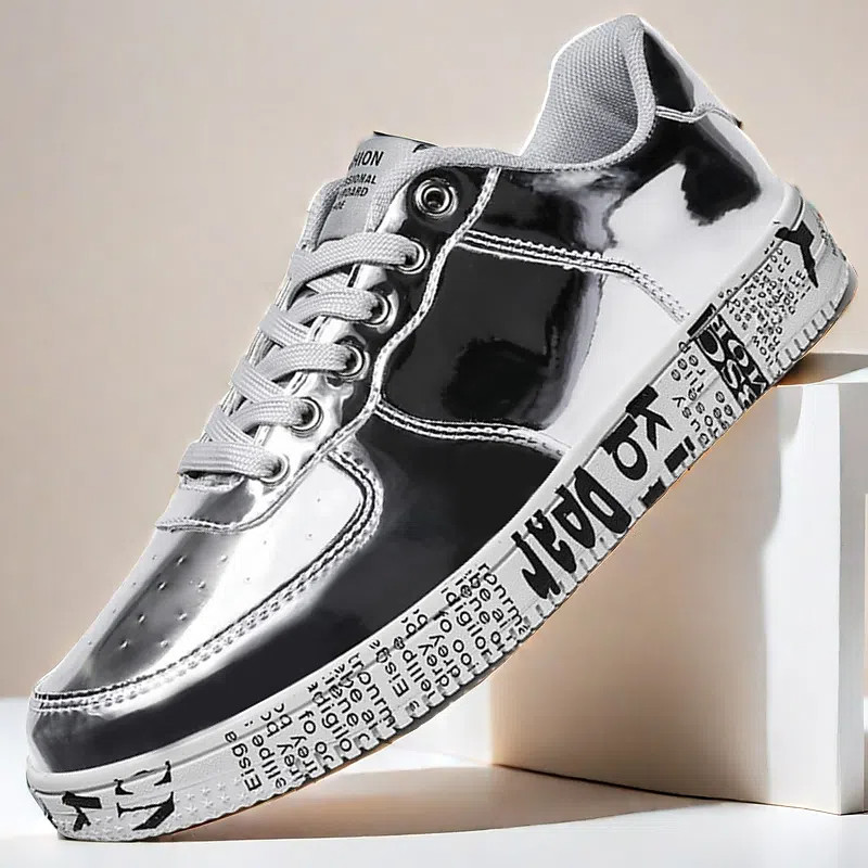 Men's Gold Metallic Sneakers with Printed Sole - Stylish Casual Shoes for Parties, Streetwear and Dance