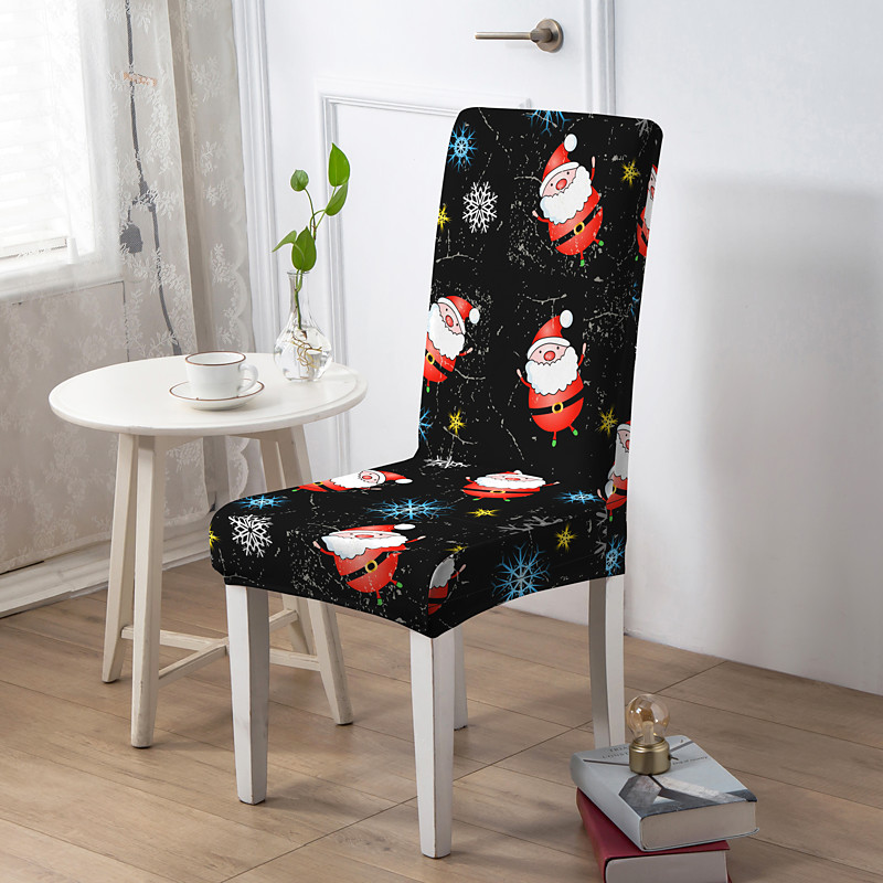 Christmas Dining Chair Cover, Geometric Printed Polyester Slipcover, Elastic Non-Slip Chair Protector for Home or Party