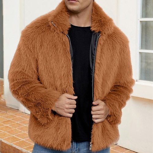 Per uomo Giacca Casual Cappotto in Pelliccia Sintetica Vacanza Quotidiano Calore Termico Felpato Autunno Inverno Semplice Moda Streetwear Colletto Mao Regolare Nero Bianco Giallo Blu reale Cammello