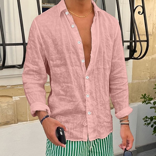 Per uomo Camicia Camicia di lino Camicia Estiva Camicia da Spiaggia Camicie sbottonate Semplice Vacanza Casuale Nero Bianco Rosa Blu reale Manica Lunga Bavero Primavera Estate Abbigliamento