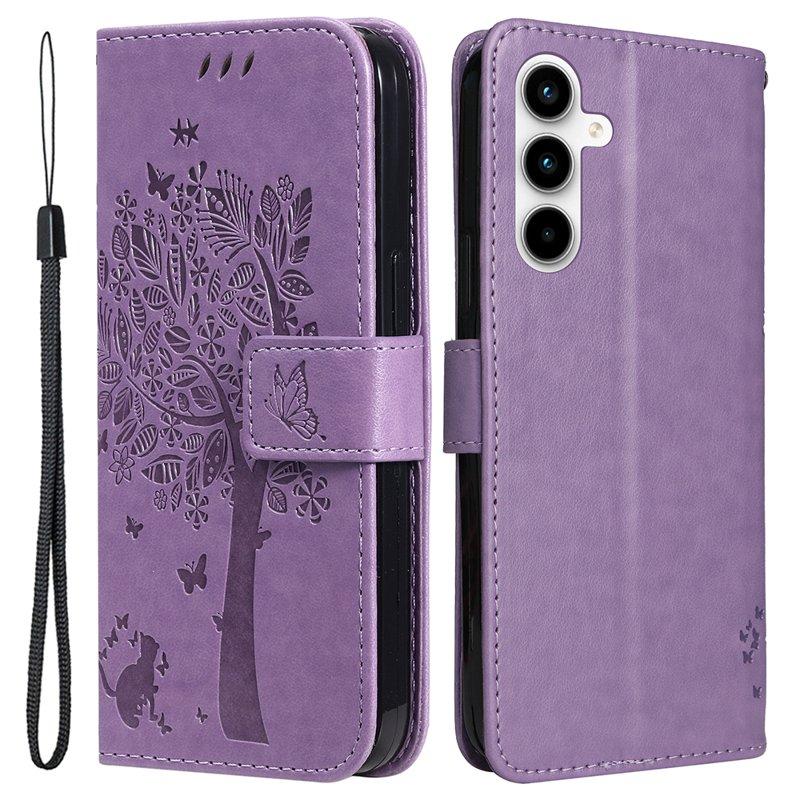 Samsung Galaxy A35 5G Fodral Konstläder Kattträdsmönster - Ljuslila