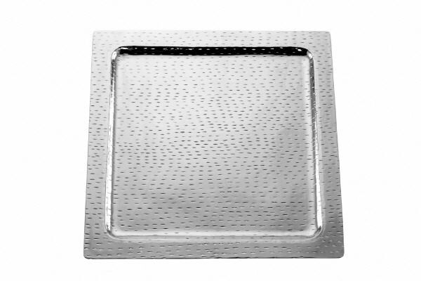 Tablett quadratisch, Reiskorn, Groß Durchmesser 50,0 cm Aluminium vernickelt