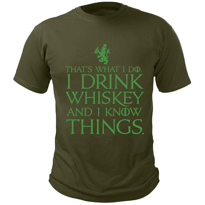 St. Patrick's Day Men's Funny Whisky Letter Print T Shirt Tee Top 100% Cotton Short Sleeve Graphic Shirt Black White Army Green Comfortable Tee Vacation Street Fashion Designer Clothing
