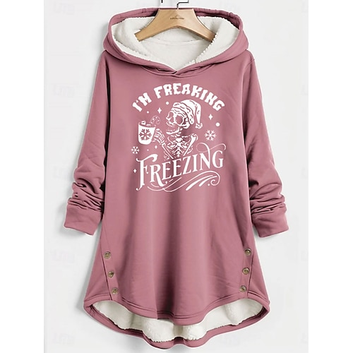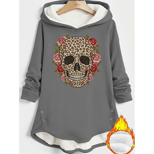 Damen Kapuzenpullover Schädel Warm Lässig Langarm Mit Kapuze Lange Oberteile Straße Alltagskleidung Ferien Knöpfe Druck Schwarz Dunkelpink Blau Grau Herbst Winter