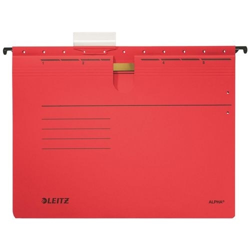 Leitz ALPHA Hängehefter 1984 DIN A4 Kaufmännische Heftung V-Base 15 mm 275 g/m² Rot 100% Recycelter Pendarec-Karton 5 Stück