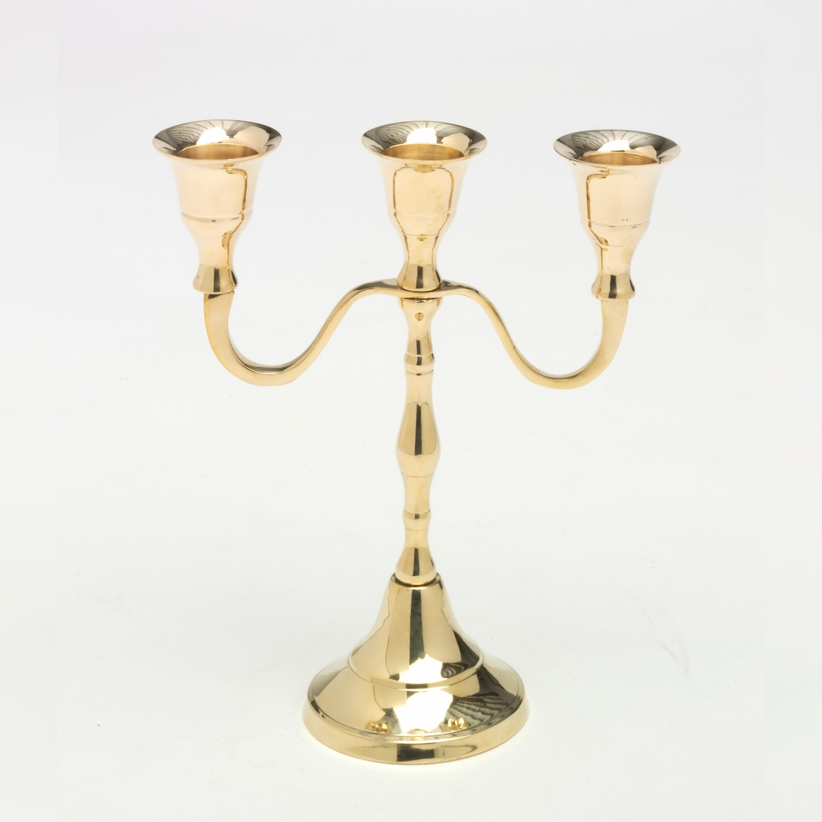 Tischleuchter 3-flammig, Mehrflammenleuchter Messing Gold H 18 cm für Kerzen Ø 2 - 2,5 cm