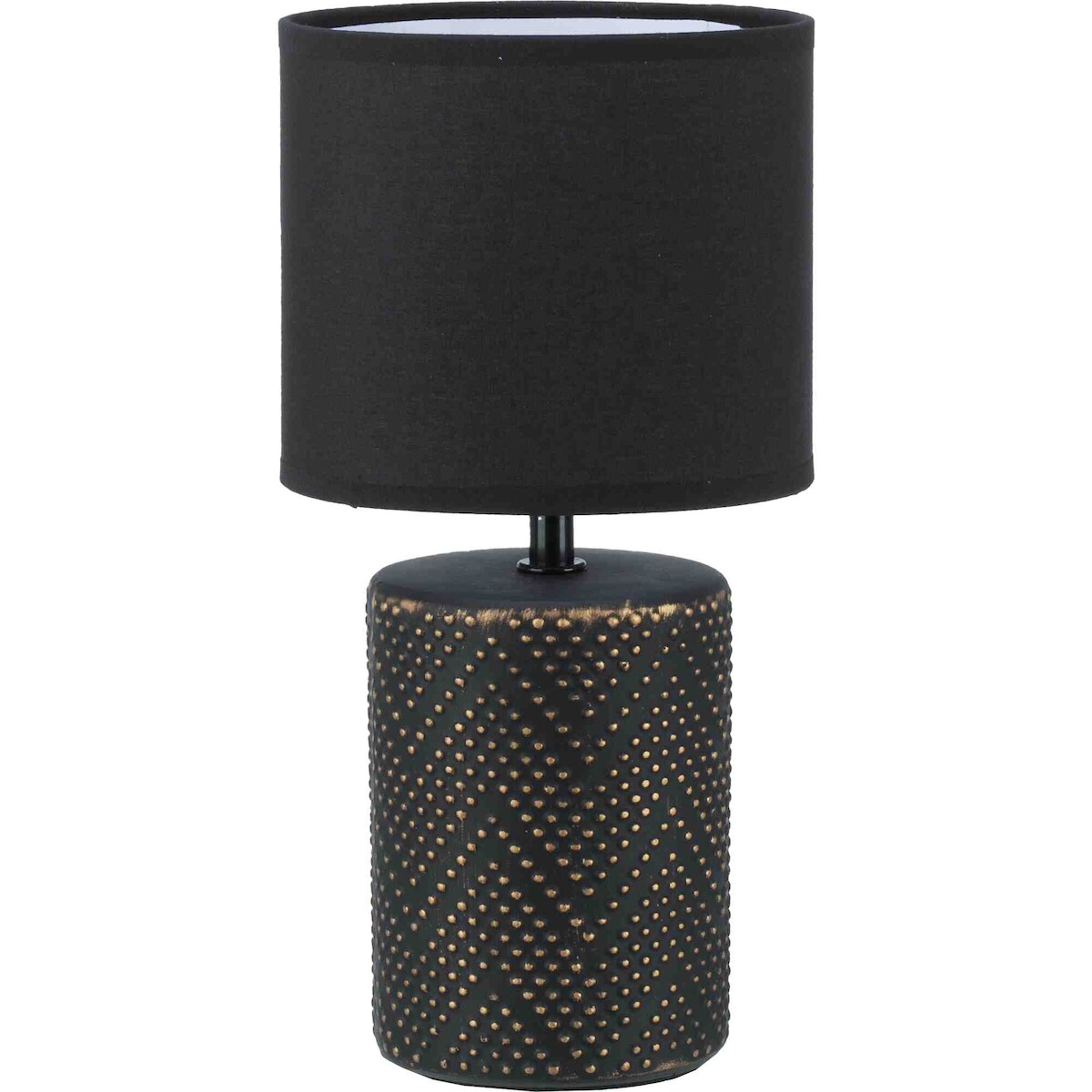 B&S Keramik Tischlampe mit Stoffschirm Rund E27 Höhe 34 cm schwarz/gold