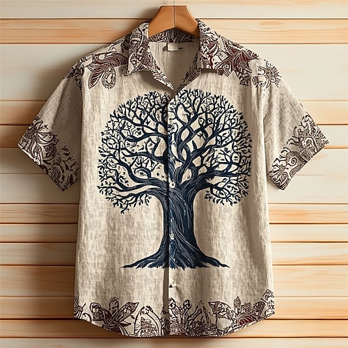Per uomo Albero della vita Camicia Camicia Estiva Camicia casual Maniche Corte Hawaiano Casual Resort Vacanza Abbigliamento quotidiano Uscire Estate Bavero Stampato Marrone scuro Marrone Cachi