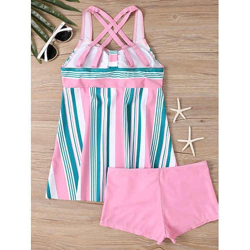 Costume da bagno Tankini da donna 2 pezzi con gamba corta controllo della pancia alta vita snellente senza schienale abbigliamento da spiaggia per le vacanze geometrico paisley scollo a V senza