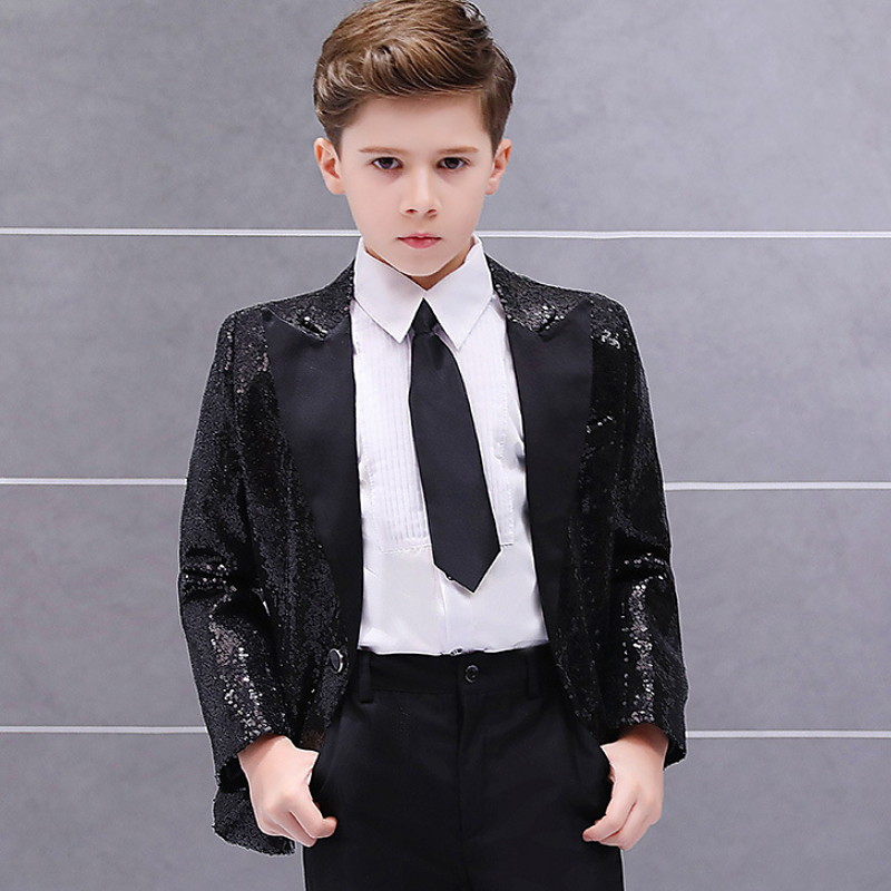 3 Pieces Ring Bearer Suit Boys Kids Suit Formal Suit Suit Blazer Shirt Pants Party Fashion Basic Formal Solid Color Sequin Sequins Silver Black Red Cotton
