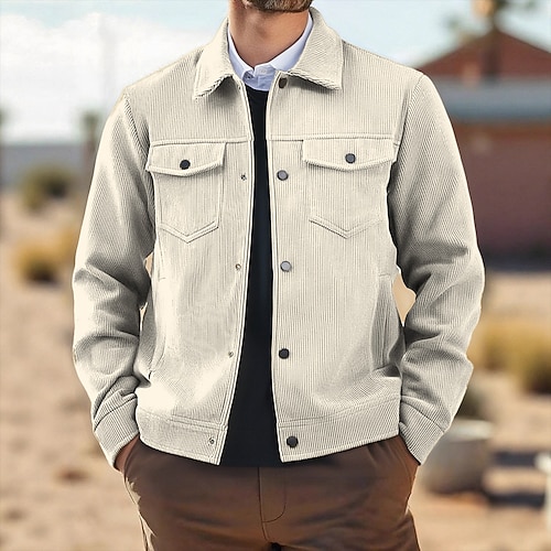 Per uomo Camicia di Velluto a Coste Giacca camicia Giacca invernale Semplice Vacanza Abbigliamento quotidiano Nero Verde militare Beige Caffè Manica Lunga Bavero Autunno Inverno Abbigliamento Tasca
