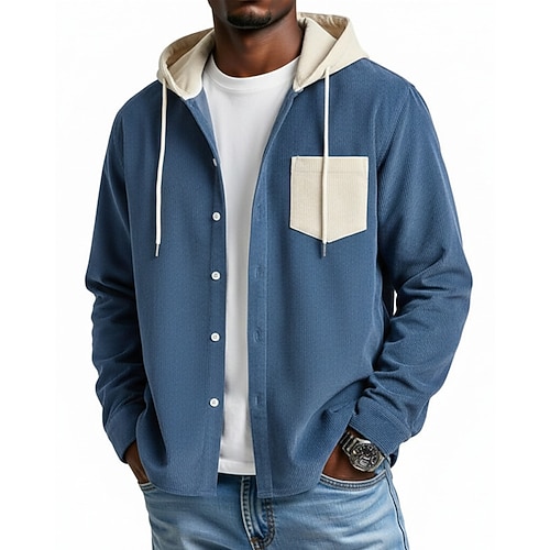 Per uomo Camicia Camicia casual Camicia di Velluto a Coste Camicia con Bottoni Blu Nero Verde militare Manica Lunga Blocco di colori Con Cappuccio Vacanza Quotidiano Con cappuccio Abbigliamento Moda