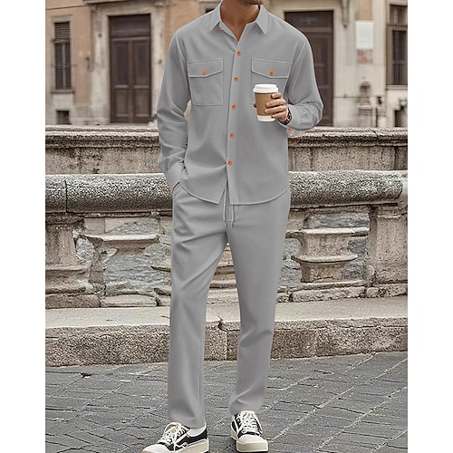 Per uomo Camicia Camicia casual Camicia da Spiaggia Camicia di Velluto a Coste Camicia con Bottoni Nero Verde militare Grigio Manica Lunga Semplice Bavero Vacanza Camicia hawaiana Tasca Abbigliamento