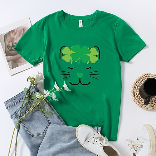 San Patrizio 2026 Corte T-shirt Cartone animato Manga Trifoglio Irlandese Grafico per Coppia Per uomo Per donna Adulti Stampa a caldo per Giorno di San Patrizio Casual Quotidiano Festival