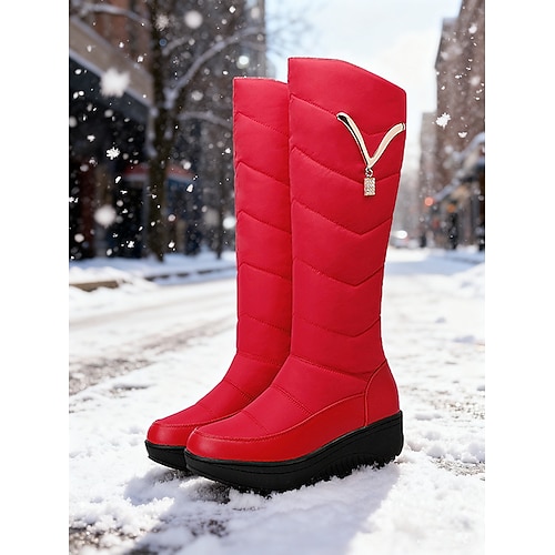 stivali invernali impermeabili neri da donna - modello imbottito trapuntato, tacco a zeppa con plateau, caldi ed eleganti per il tempo nevoso e le attività all'aperto
