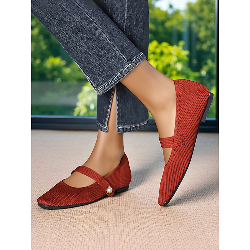 Women's Beige Knit Mary Jane Flats with Pearl Strap - Lightweight Breathable Casual Shoes for Daily Wear,Travel and Office Outfits