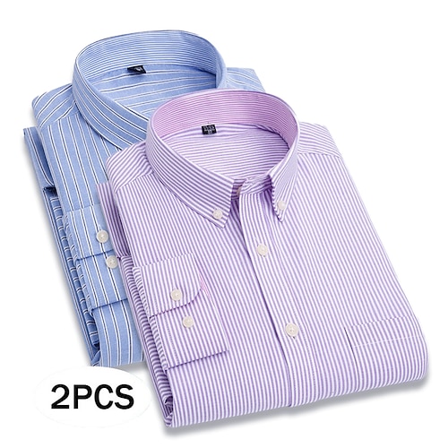 Per uomo Camicia Camicia elegante Camicia button-down Camicia Oxford A righe Quotidiano Affari BluBlu chiaro Rosso grigio Azzurro grigio Viola Blu Manica Lunga Collo ripiegato Tutte le stagioni