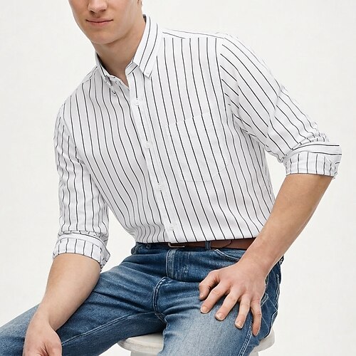 Per uomo Camicia Camicia elegante Camicia button-down Strisce verticali Casuale Quotidiano Blu Blu chiaro Nero Bianco Manica Lunga Collo ripiegato Tutte le stagioni Abbigliamento Patchwork