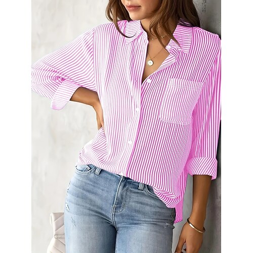 Per donna Camicia Camicia button-down Camicia casual Blusa Bottoni A righe Elegante Classico Moderno Manica Lunga Colletto a Camicia Top Regolari Quotidiano Ferie Uscire Blu Nero Rosa Viola Verde