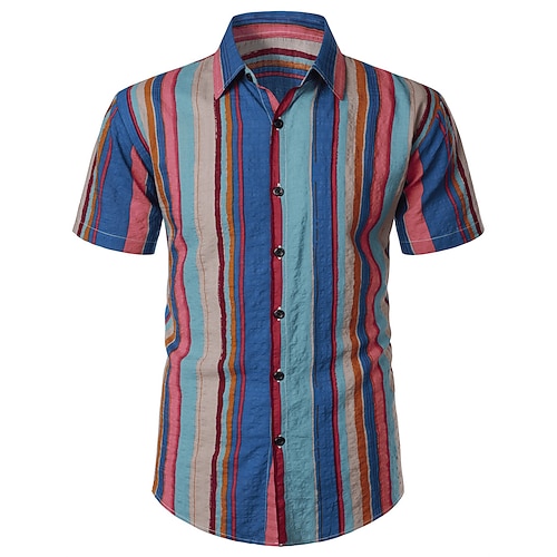 Per uomo Camicia Camicia Estiva Camicia casual Camicia da Spiaggia Camicia con Bottoni Blu marino Blu Manica Corta A righe Bavero Vacanza Camicia hawaiana Abbigliamento Moda Casual Confortevole