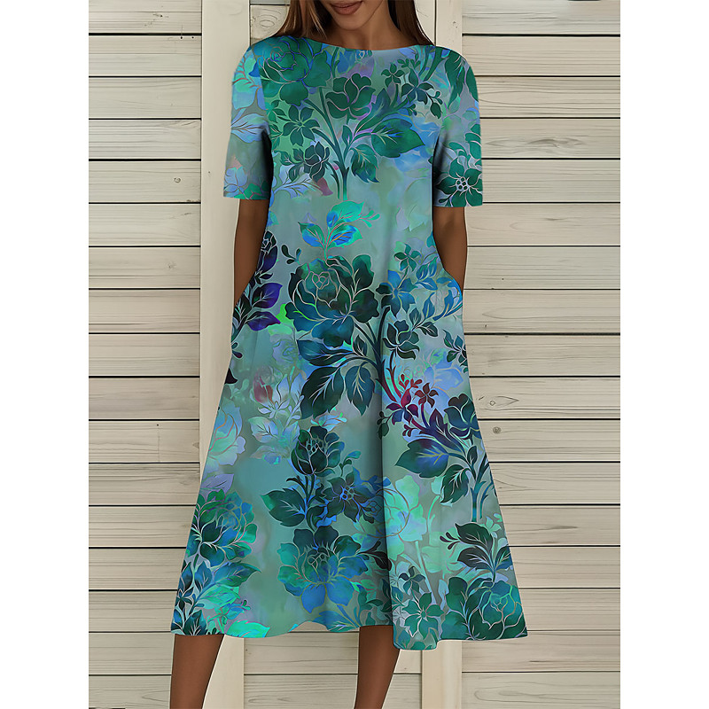 Women's Midi Dress T Shirt Dress Tee Dress A Line Dress Summer Dress Vacation Casual Beach Date Summer Dress Regular Fit Floral Graphic Short Sleeve Crew Neck Red Blue Green Summer Spring
