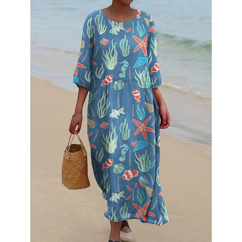 Women's Midi Dress Casual Dress Print Dress Fashion Modern Daily Beach Weekend Regular Fit Fish 3/4 Length Sleeve Crew Neck Blue Yellow Red Spring Fall Autumn