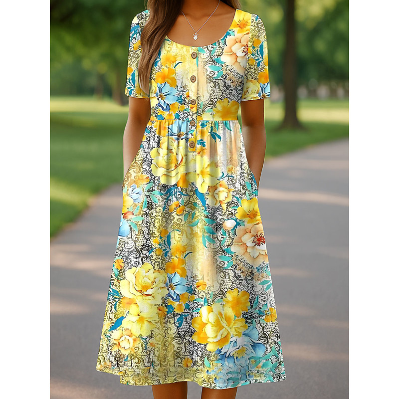 Women's Midi Dress Knit Dress Casual Dress Sundress A Line Dress Vacation Casual Beach Holiday Regular Fit Floral Graphic Short Sleeve Crew Neck White Yellow Pink Blue Summer Spring