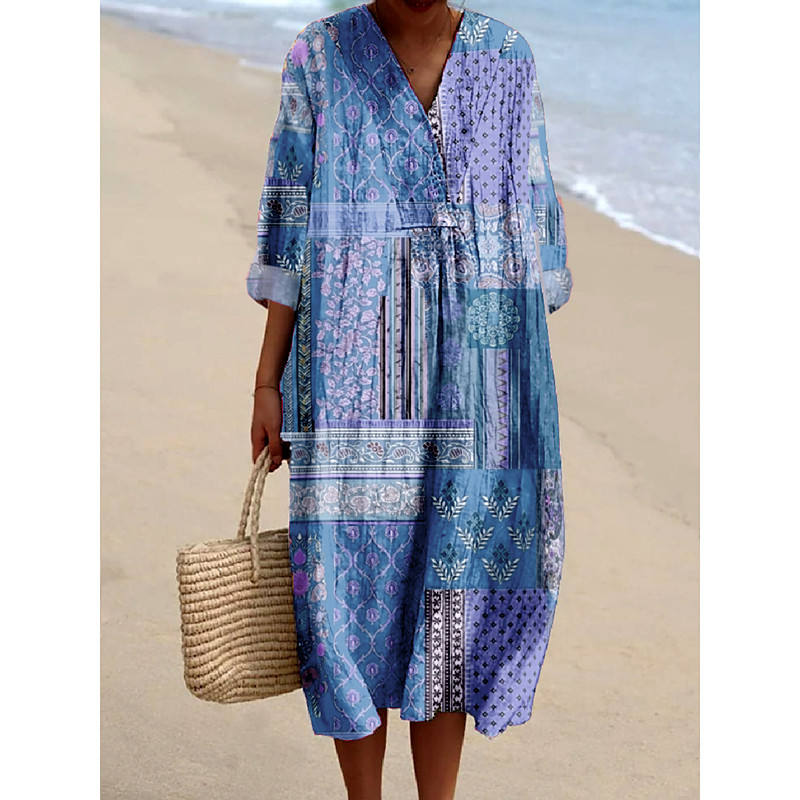 Women's Midi Dress Sundress A Line Dress Vacation Casual Beach Party Going out Beach Loose Fit Graphic Geometric Short Sleeve V Neck Blue White Light Green Royal Blue Blue Summer Spring
