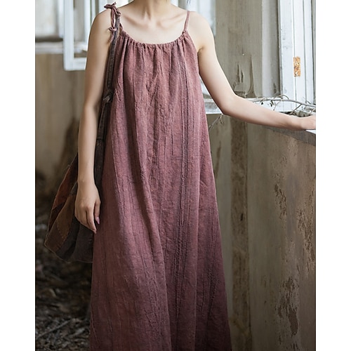 Per donna Abito Midi Abito in cotone e lino Abito Sottoveste Vintage Moda Quotidiano All'aperto Vacanza Vestibilità comoda Semplice Senza Maniche Spalline Blu Verde acqua Bianco Giallo Estate