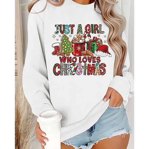 Natale Per donna Blusa Albero di Natale Casual Manica Lunga Girocollo Top Regolari Quotidiano Ferie Stampato Nero Bianco Rosa Rosso Arancione Autunno Inverno