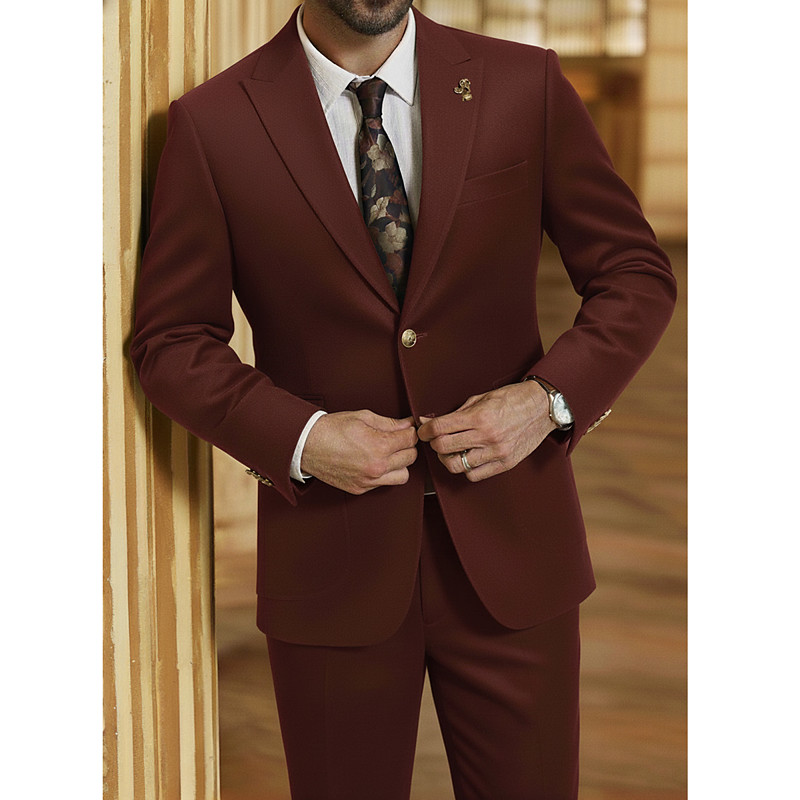 Men's Prom Wedding Party Suits Peaked Lapel Champagne Red Fashion Formal Solid Colored Standard Fit 3 Piece Single Breasted One-button