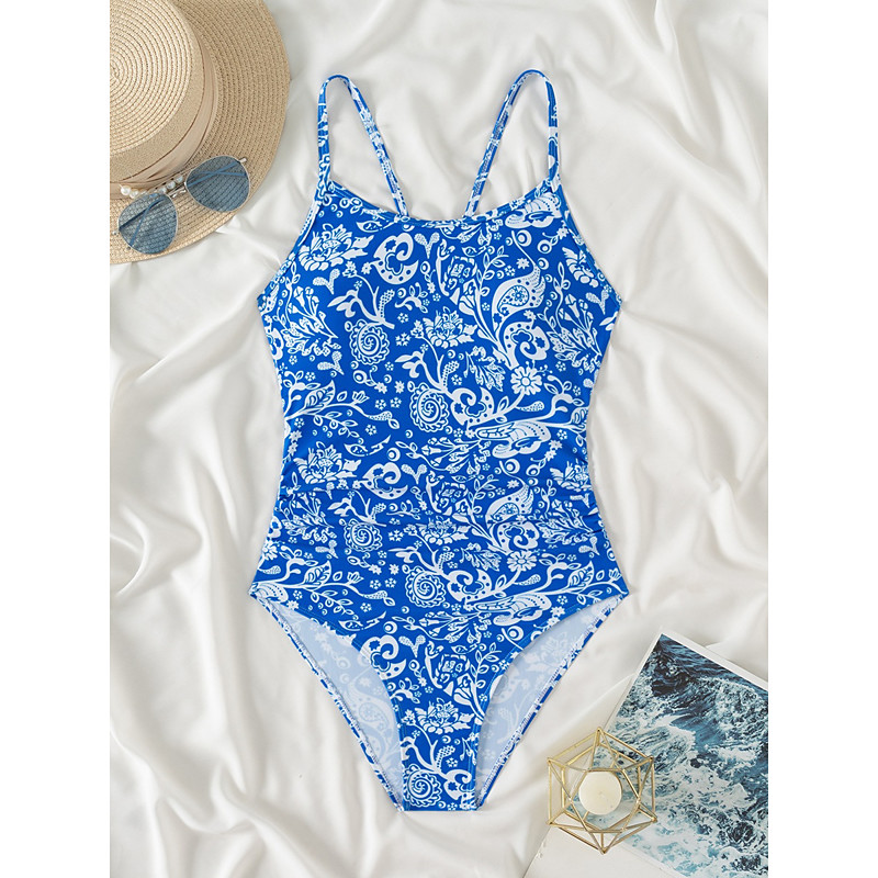 Per donna Costume da bagno con stampa floreale One Piece Costume da bagno a vita alta con volant Tinta unita Elastico Senza Maniche Costume da Bagno Surf Snorkeling Nuoto Estate
