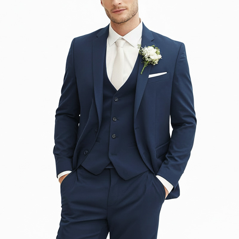 Men's Party Wedding Suits Navy Blue Business Formal Solid Colored Standard Fit 3 Piece Single Breasted One-button