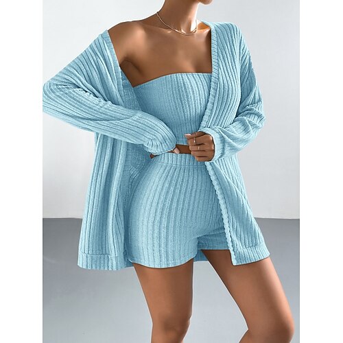 Per donna Set Pigiama 3 Pezzi Casual Comfort Colore Puro Elastico in vita Shorts Quotidiano Casa Manica Lunga Blu Nero Rosa Estate Primavera Autunno Vestibilità regolare
