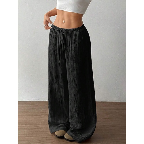 Per donna 100% cotone Gamba larga Pantaloni Pantaloni Larghi Moda Casual Lounge Lunghezza intera Vita Alta Baggy Micro-elastico Quotidiano Vacanza Verde mela Nero Bianco Blu marino scuro Estate