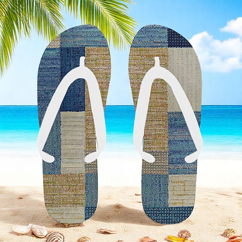 Men's Blue Leaf Printed Flip Flops – Tropical Stylish Style for Beach Vacations, Island Hopping Beachside Dinners