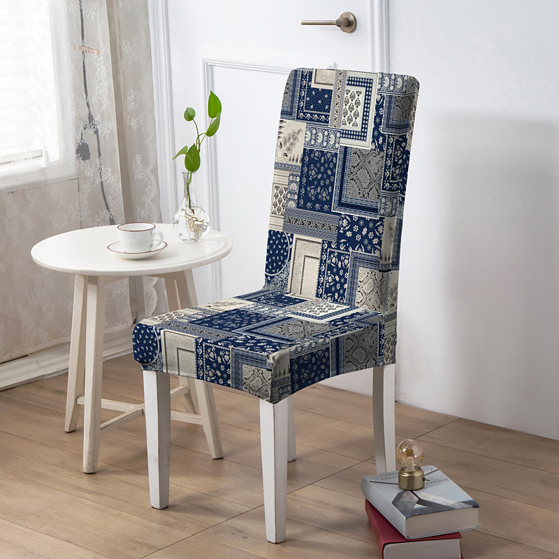 Floral Dining Chair Cover, Geometric Printed Polyester Slipcover, Elastic Non-Slip Chair Protector for Home or Party