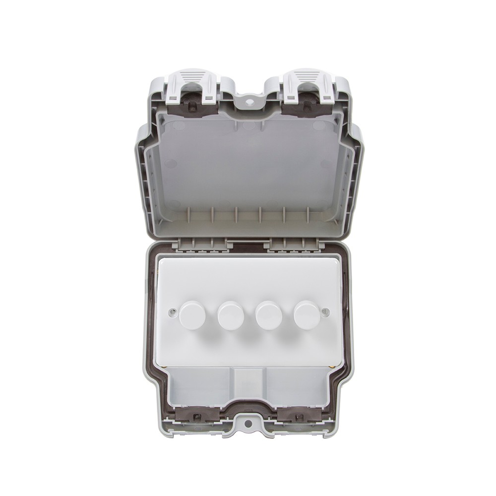 Lieber Silk White 4 Gang Outdoor Dimmer Switch IP66 Trailing Edge 100W LED (250w Halogen/Incandescent)