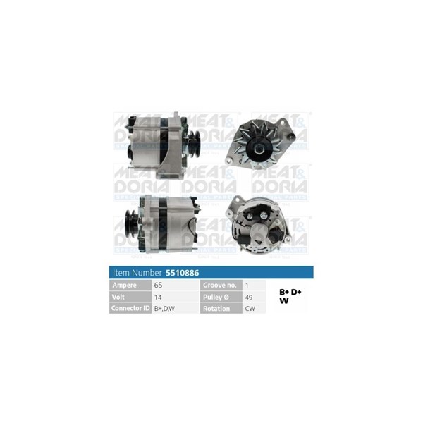Laturi 14V 65A Meat & doria 5510886 - vw transporter t4 buss, transporter t4 flak/chassi, transporter t4 skåp - OE 074 903 023, 074 903 023X