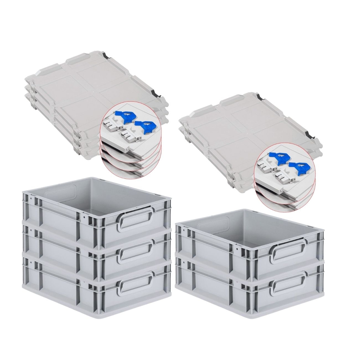PROREGAL 5x Eurobox NextGen Grip mit Scharnierdeckel & blauen Verschlüssen | HxBxT 12x30x40cm | 11 Liter | Griffe geschlossen | Glatter Boden